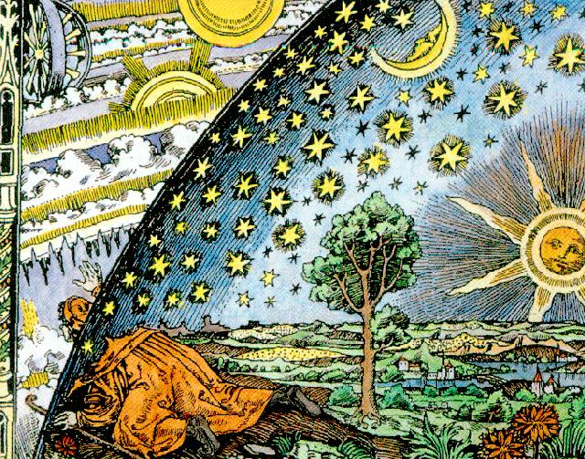 This Flammarion engraving, by an unknown artist, is called Empedocles Breaks through the Crystal Spheres. Its original caption read: “A missionary of the Middle Ages tells that he had found the point where the sky and the Earth touch…”